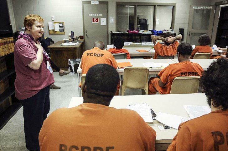 Four inmates attended the first literacy class at Pulaski County jail in January 2016, and volunteers Kathy Rateliff and Lucy Sausen weren’t sure how things would go.